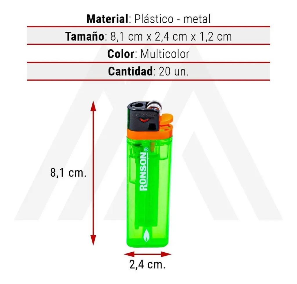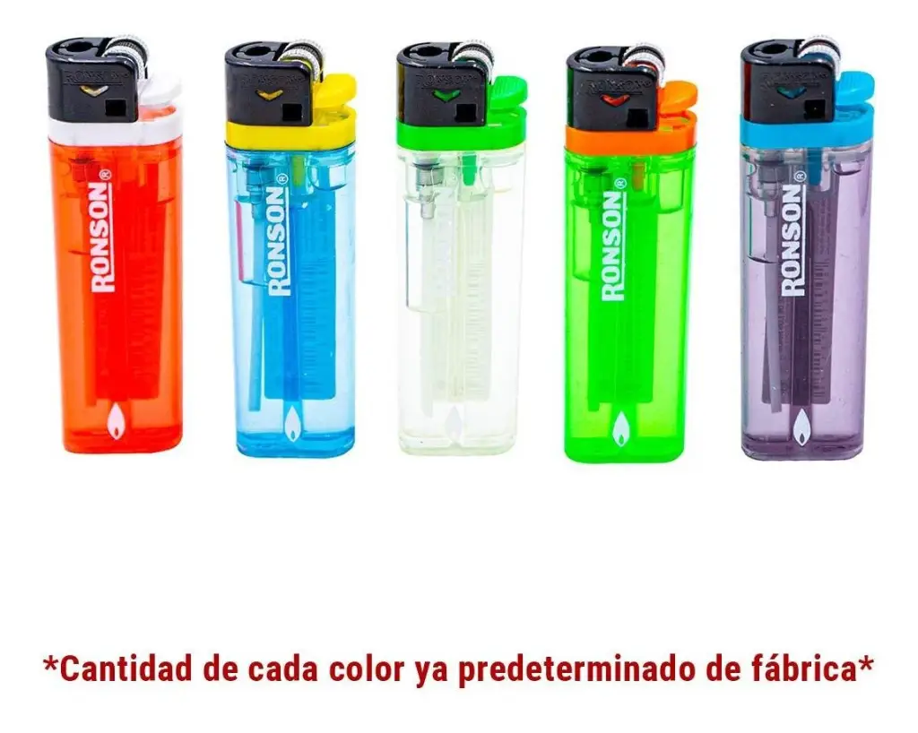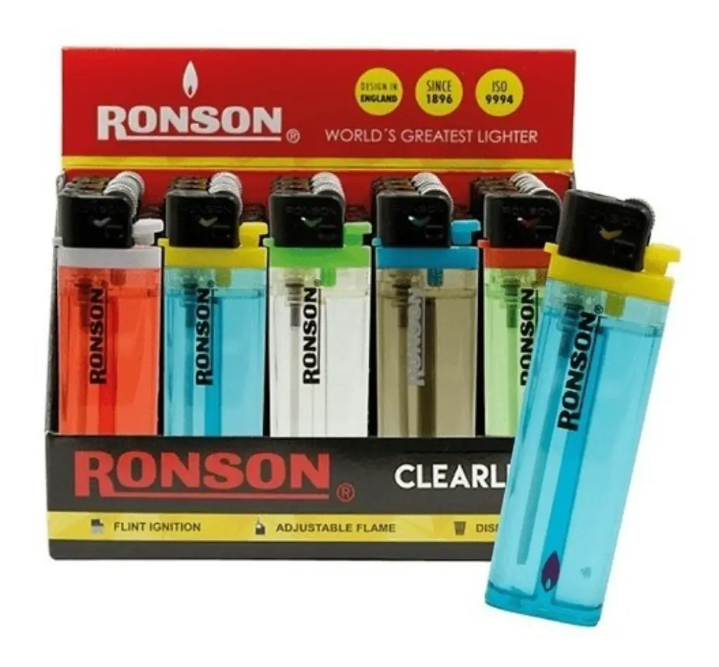 Encendedor Ronson, distintos colores caja 20 unidades.